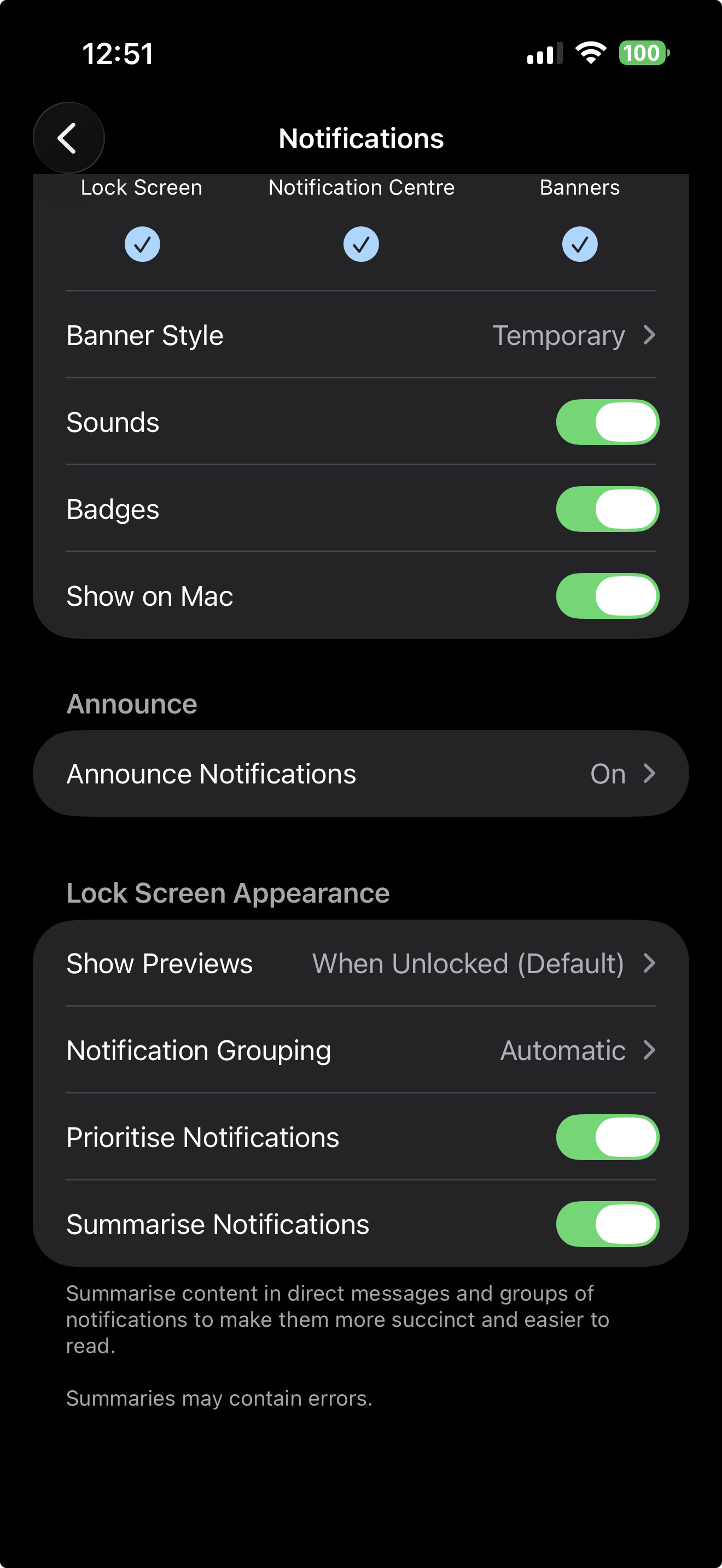 Settings > Notifications > Messages > Show